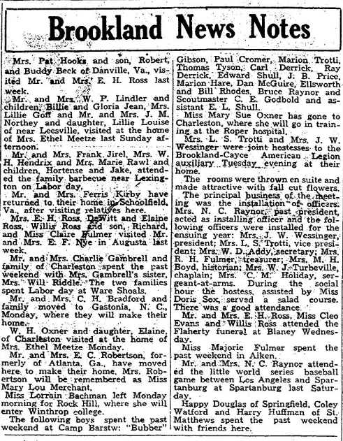 Mr. and Mrs. Charlie Gambrell and family of Charleston spent the past weekend with Mrs. Gambrell’s sister, Mrs. Will Riddle. The two families spent Labor day at Ware Shoals.