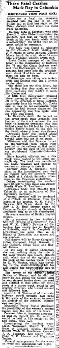And Negro Woman Dies When Struck on Old Winnsboro Road – Total for Richland Rises to 18 for 1936.