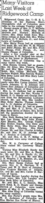 Ridgewood Camp, Jan. 7- R. E. L. Freeman of the Business Men’s Evangelistic club of Columbia gave talks in the cottages Tuesday night.