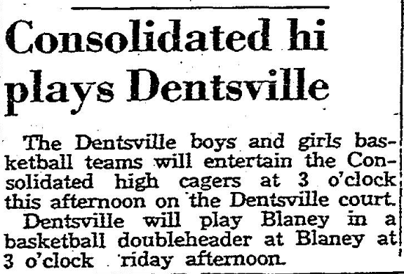 The Dentsville boys and girls basketball teams will entertain the Consolidated high cagers at 3 o’clock this afternoon on the Dentsville court.
