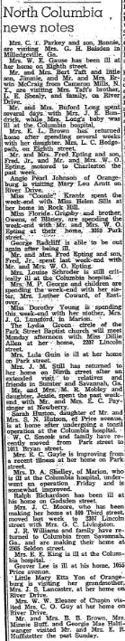 Mr. and Mrs. Buford Long spent several days with Mrs. J. E. Bundrick, while Mrs. Long’s baby was ill at the Columbia hospital.