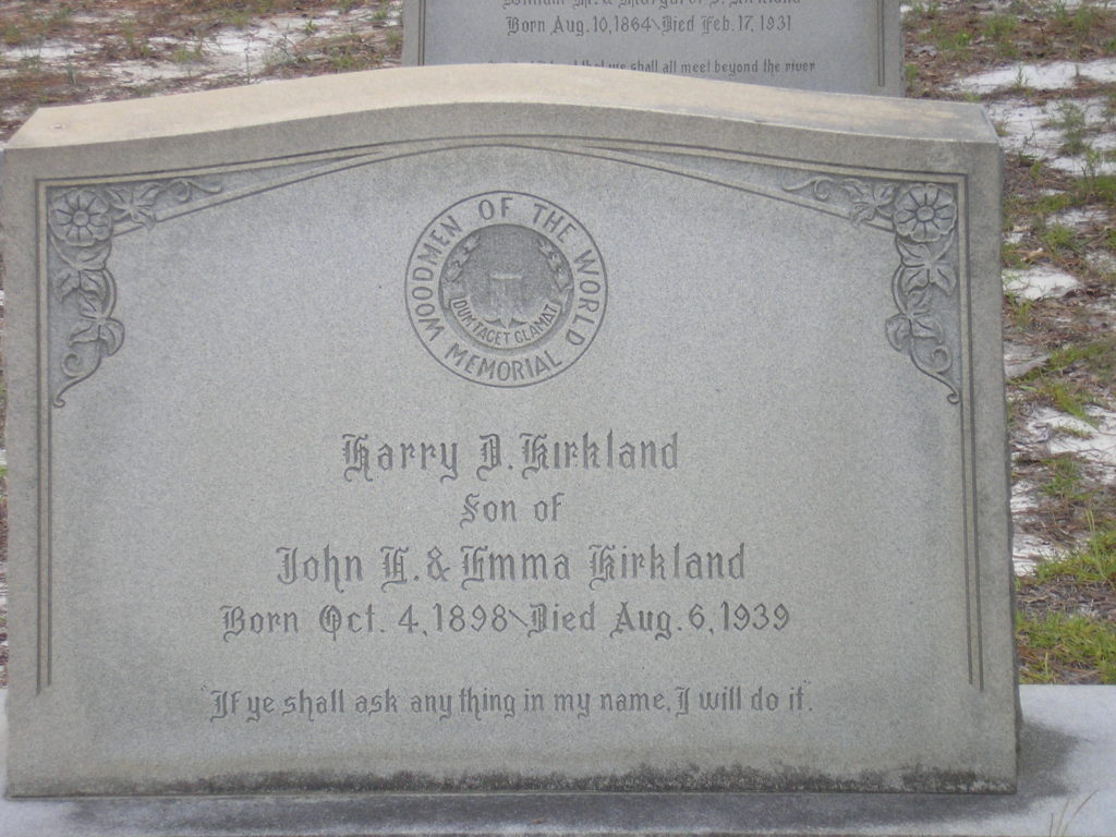 Harry Daniel Kirkland was born October 4, 1898 to John Lee Kirkland, Sr., and Emma Strange Kirkland.