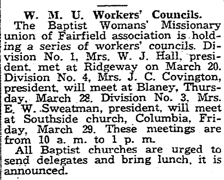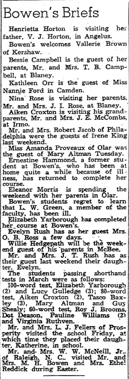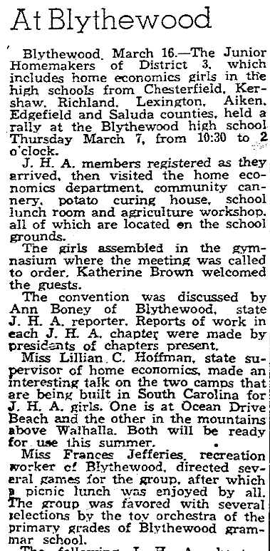EPWORTH ORPHANGE HIGH SCHOOL, Florence Lee Vergeson; 2. ALLENDALE HIGH SCHOOL, Harriett Houser; 3. GREENWOOD HIGH SCHOOL, Anna Lector McKinney; 4. CHERAW HIGH SCHOOL, Mable Houser; 5. TRENTON HIGH SCHOOL, Mary Lee Johnson; 6. SALLEY HIGH SCHOOL, Virginia Bobby Faust; 7. ELLOREE HIGH SCHOOL, Blanche Felkel; 8. BLANEY HIGH SCHOOL, Doris Maddox; 9. BLACKVILLE HIGH SCHOOL; Margaret Lee Gyles; 10. VARNVILLE HIGH SCHOOL, Lucile Ginn; … Continue reading 100 “Miss Hi Misses” Selected for Winthrop College