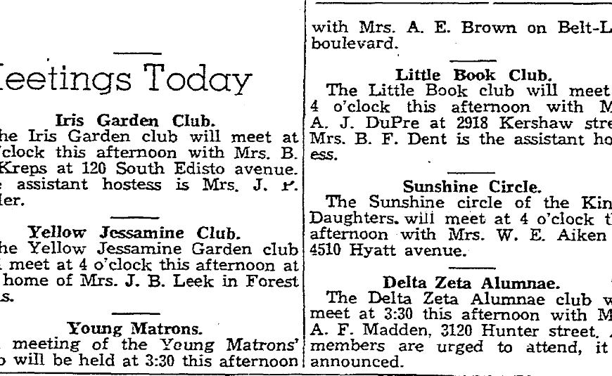 There was an average attendance of 301 students for each of the five nights the Baptist training union of the Fairfield Baptist association conducted its school during the past week at First Baptist church. Largest attendance was from the Cayce, Columbia First Baptist and Park Street churches. Other churches represented included Eau Claire, Woodfin, Blaney, Shandon, Colonial Heights, Southside, Rosewood, Earlewood, Tabernacle and Spear’s Creek … Continue reading Baptist Union Ends Training School Week