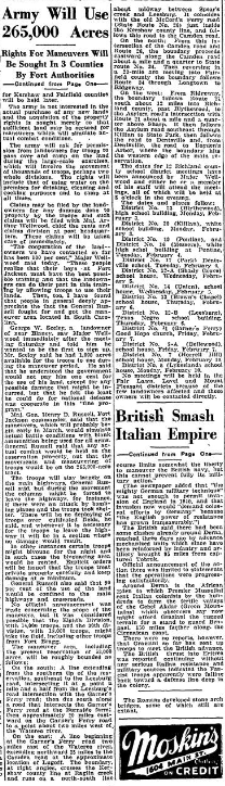 Claims may be filed by the landowners for any damage done to the property by the troops and such claims will be filed with Major Arthur Wellwood, chief of rents and claims division at post headquarters. These claims will be taken care of immediately.
