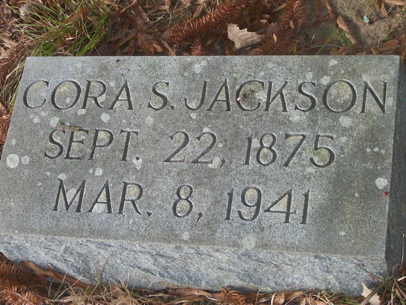 Cora L Jackson was counted in the census on 26 Apr 1910 in Cleveland, Bradley, Tennessee, USA, as a 34-year-old, female, married, white, wife. Also in the home were; her husband, Will E Jackson; her children, Thelma Jackson and Willie Bell Jackson.