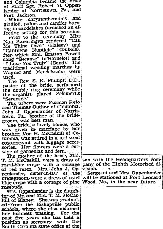 Mrs. Martha A. Hallman, Leesville.A. L. Mauldin, Anderson.J. L. Harling, Columbia.J. J. Hinson, Rock Hill.Doris Hinton, infant, Reevesville.W. W. Wilkins, Florence.Lewis G. Temples, Graniteville.John T. Long, Leesville.J. L. Kirkland, Blaney.J. M. Guiant, Columbia. Continue reading Deaths
