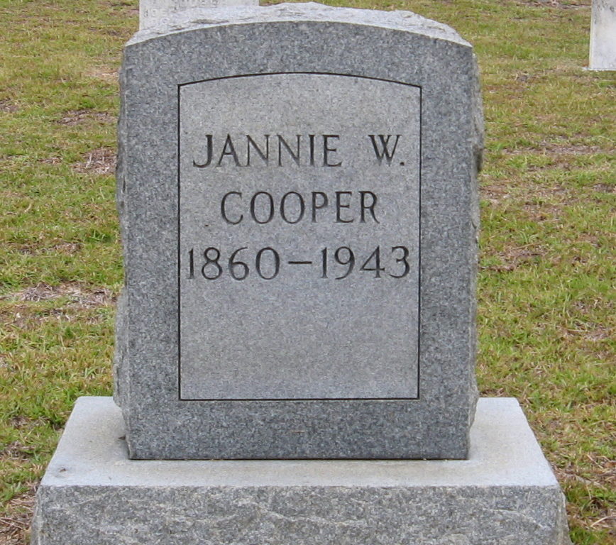 Jannie B Watts Cooper was born about 1860, in South Carolina, the daughter of Daniel W. Watts and Jane Elizabeth Grooms.