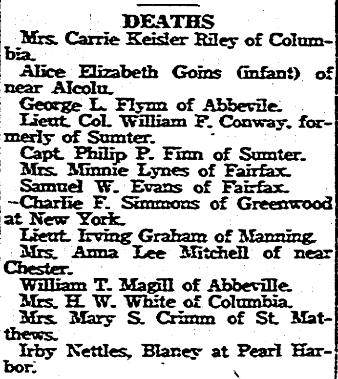 Mrs. Mary S. Crimm of St. Matthews.