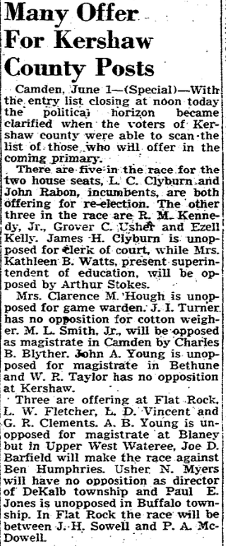 The Rev. Willie S. Cromer, pastor of the Duke Street Baptist Church at Ninety Six, has resigned that pastorate to accept a call to the Second Baptist Church in Belton which will begin July 15. Originally from West Columbia, the Rev. M. Cromer was pastor of the Baptist Church in Blaney before going to Ninety Six. Continue reading Rev. Cromer Accepts Call To Belton