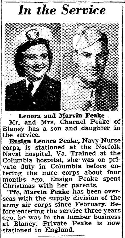 Mr. and Mrs. Charnel Peake of Blaney has a son and daughter in the service.