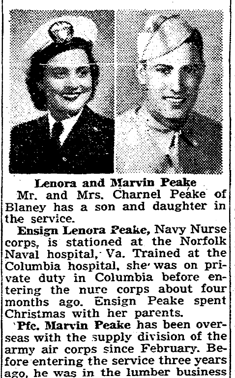 Mr. and Mrs. Charnel Peake of Blaney has a son and daughter in the service.