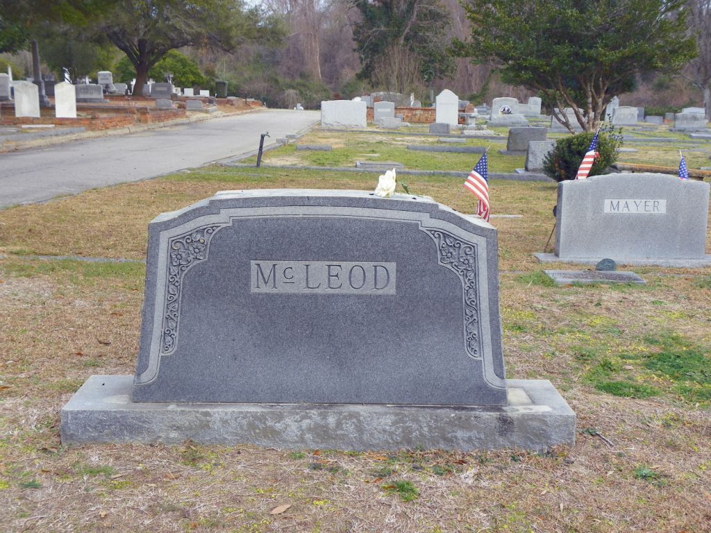 Surviving besides a widow, are two sons, Lieut. Francis McLeod, in France, J. H. McLeod, Jr. deputy Sheriff of Kershaw county; four daughters, Mrs. D. B. Allen of Norfolk, Va., Mrs. M. E. Moody, of this city, Mrs. Norman Truesdale of the Pines, Camden, and Doris at home: also, three brothers, Larry McLeod, of Lancaster; Thomas, of Honeybee, Ky., and Donald, of Blaney; two sisters, Gertrude McLeod of Augusta, and Mrs. Mamie Trotter of Columbia. He was born in West Wateree section, Kershaw county.