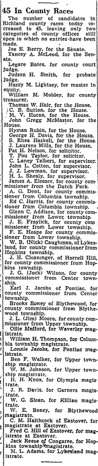 C. M. Haithcock of Eastover, for magistrate at Eastover.