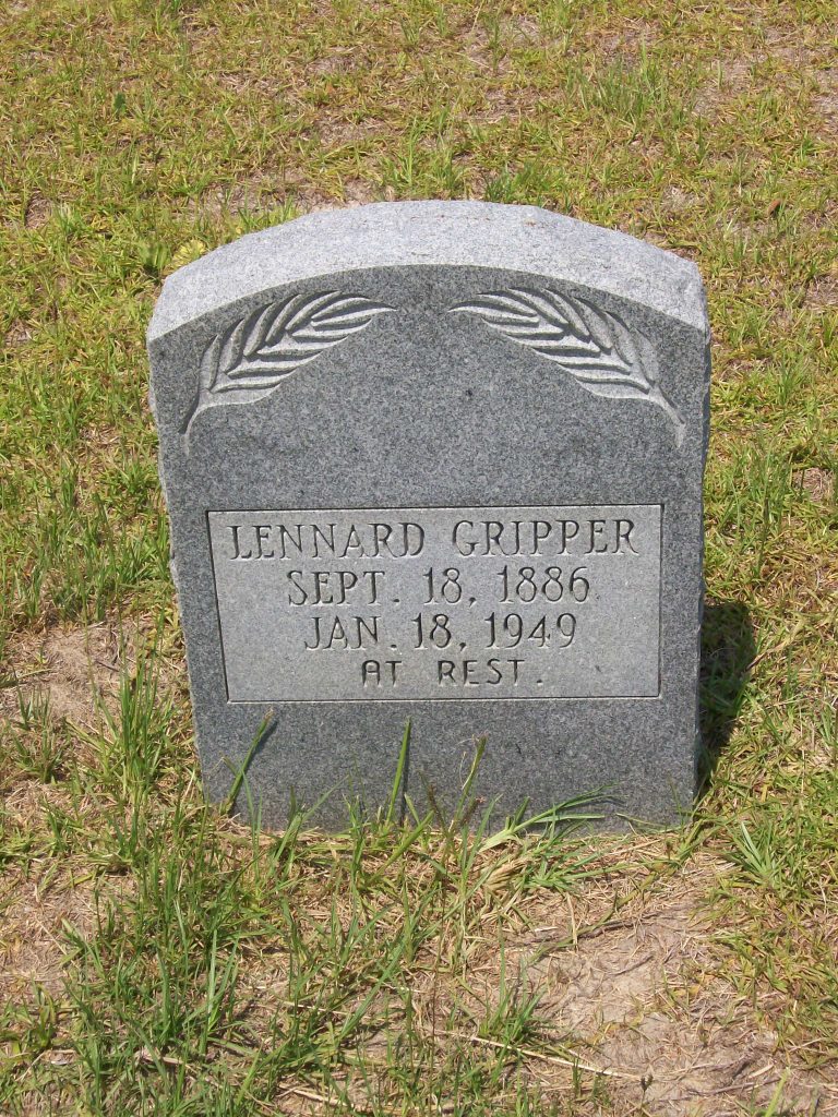 He died on 18 Jan 1949. Lennard Gripper Sr was buried in Elgin, Kershaw, South Carolina, USA at Fort Clark Baptist Church Cemetery.