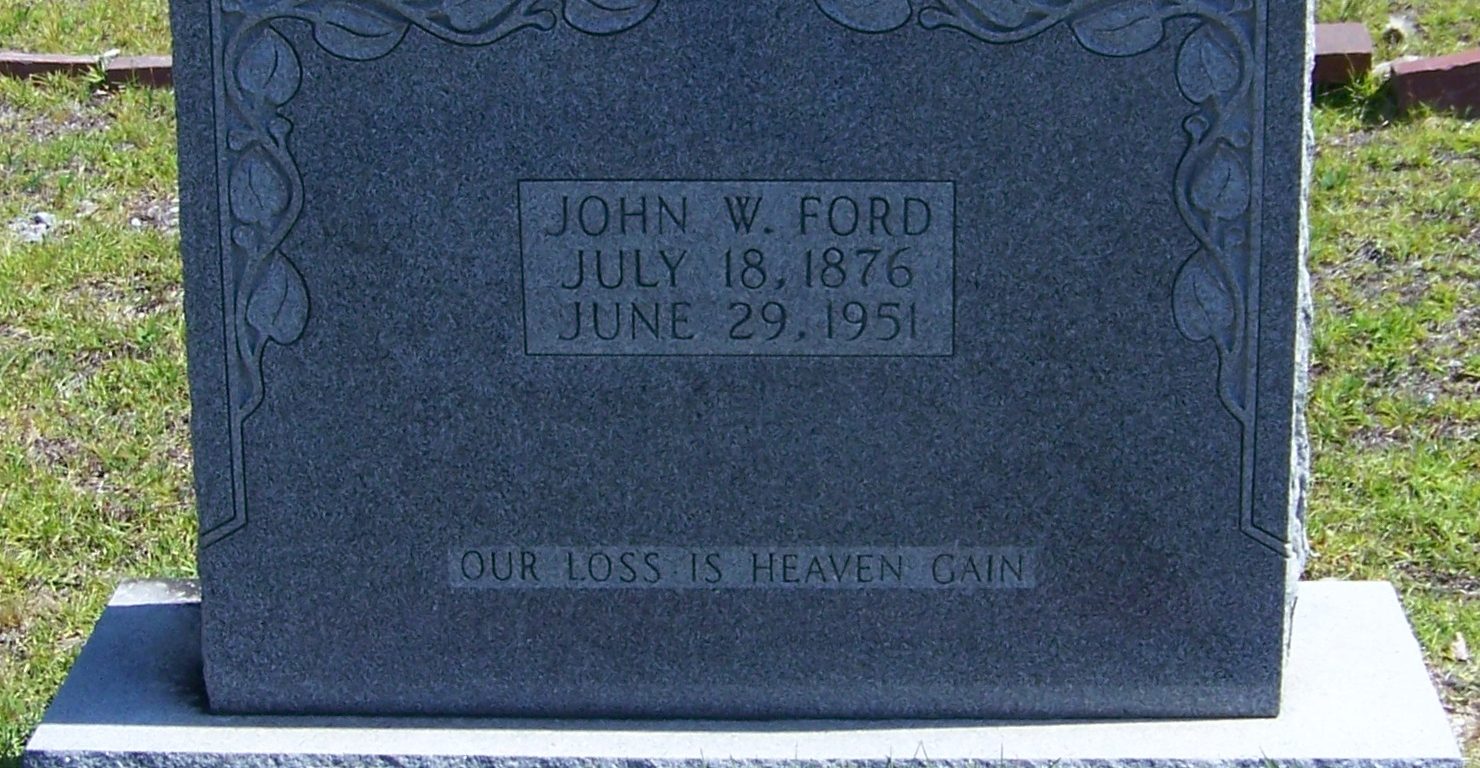 On January 27, 2003, John W. Ford was listed as the deceased father in the obituary of Annie Mae “Granny” Ford Emert.