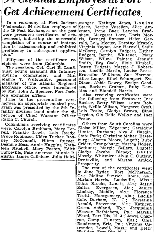 Camden – (Special) – The First Baptist Church of Camden was the scene of an impressive nuptial event at 5 p.m. August 19, when Miss Alice Joan Rush, daughter of Mr. and Mrs. W. Hoyt Rush became the bride of Richard Lee Wingard, son of Mr. and Mrs. Herbert T. Wingard of Lexington. The Rev. J. B. Caston of Columbia officiated, using the double-ring ceremony. … Continue reading Rush-Wingard Marriage Solemnized