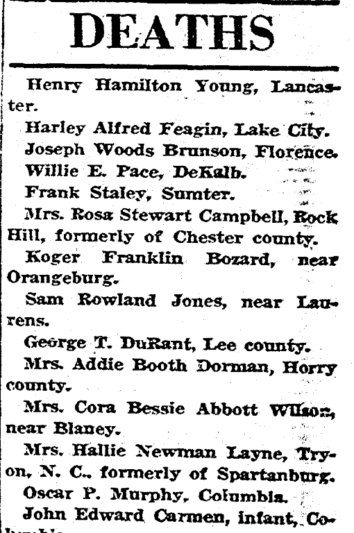 Mrs. Rosa Stewart Campbell, Rock Hill, formerly of Chester county.