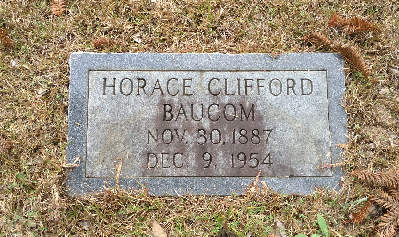 On November 13, 2010, Horace Clifford Baucom was listed as the deceased father in the obituary of Mildred Baucom Smith.