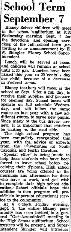 At 8 o’clock Friday evening, September 9, the entire Blaney community has been invited to a general “Get Acquainted” meeting in the high school auditorium. School trustees will be present, and superintendent Shingler will introduce new teachers, and outline the school’s work this year.
