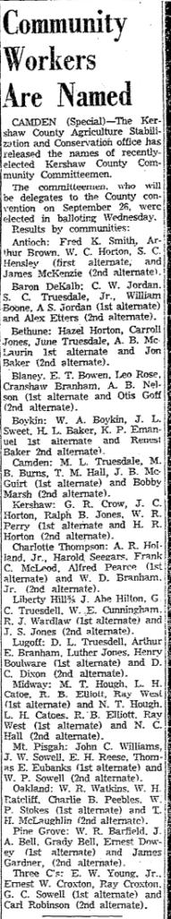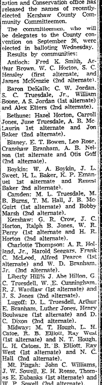 Lugoff; D. L. Truesdale, Arthur E. Branham, Luther Jones, Henry Boulware (1st alternate) and D. C. Dixon (2nd alternate).