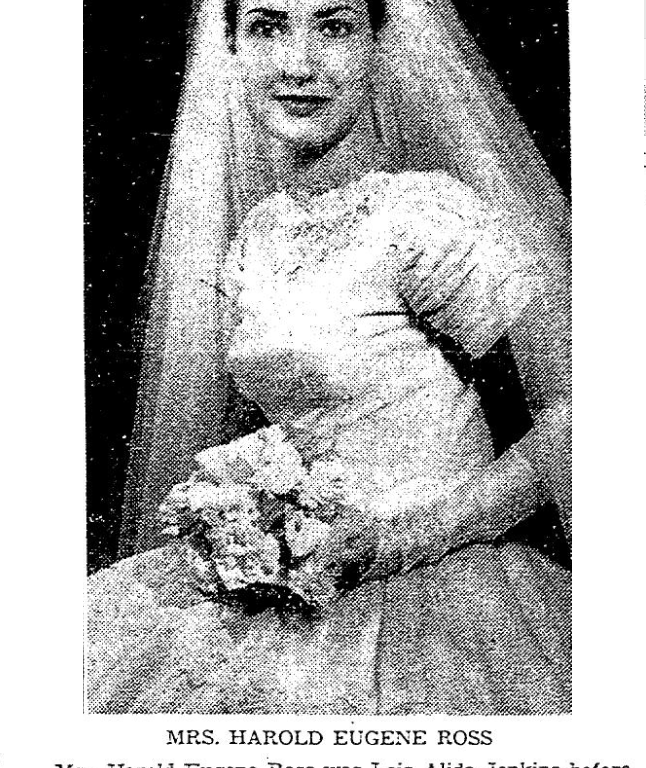 Mrs. Harold Eugene Ross was Lois Alida Jenkins before her wedding at 2:30 p.m. August 2 in the First Baptist Church. She is the daughter of Mrs. Joseph Albion Rahn of Columbia and the late, Frank Pressley Jenkins. The bridegroom is the son of Mr. and Mrs. J. Paul Ross, Sr. (Lillian Carrie Hair Ross), of Blaney.