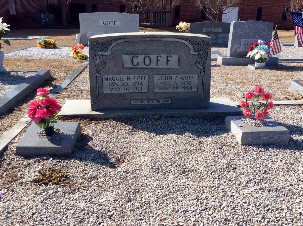 On December 15, 2004, Maggie Goff was mentioned as the deceased mother in the obituary of Mrs. Eloise Goff Starling.