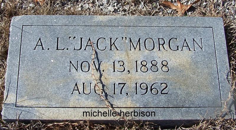 Jack L Morgan was counted in the census on 13 Jan 1920 in Wateree, Kershaw, South Carolina, USA, as a 32-year-old, male, married, white, head of household. Also in the home was his wife, Allice Morgan; and their children; Certis Morgan, Pearl Morgan and Ellie Morgan.