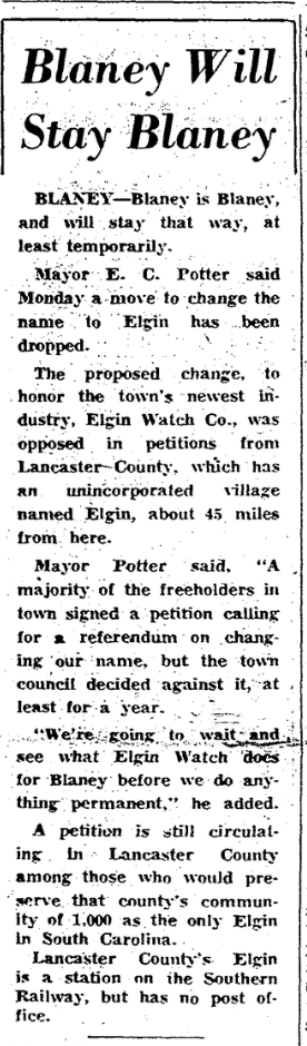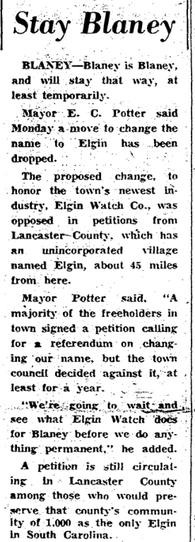 A petition is still circulating in Lancaster County among those who would preserve that county’s community of 1,000 as the only Elgin in South Carolina.