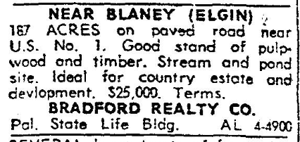 187 ACRES on paved road near U.S. No. 1. Good stand of pulpwood and timber. Stream and pond site. Ideal for country estate and development. $25,000. Terms