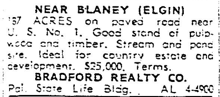 187 ACRES on paved road near U.S. No. 1. Good stand of pulpwood and timber. Stream and pond site. Ideal for country estate and development. $25,000. Terms