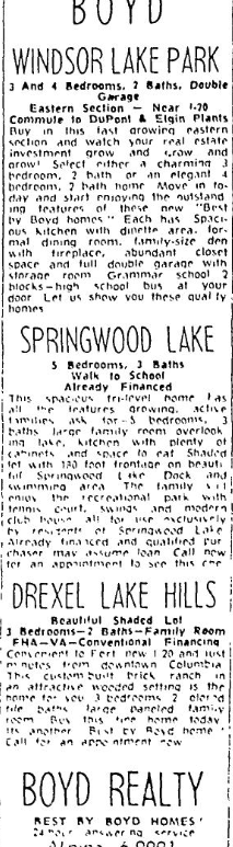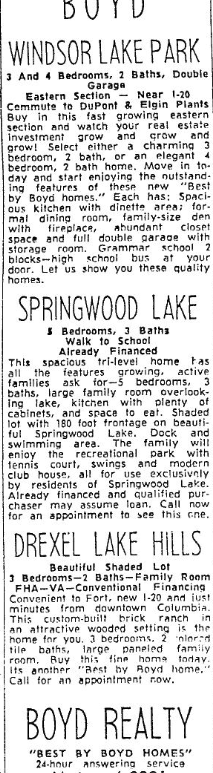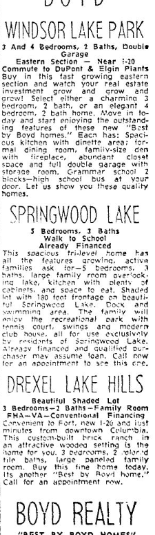 BOYD WINDSOR LAKE PARK3 And 4 Bedrooms, 2 Baths, Double GarageEastern Section Near I-20 Commute 1 DuPont & Elgin PlantsBuy in this fast growing eastern section and watch your real estate investment grow and grow! Select either a charming 3 bedroom, 2 bath, or an elegant 4 bedroom, 2 bath home. Move in today and start enjoying the outstanding features of these new “Best by … Continue reading Homes For Sale 90