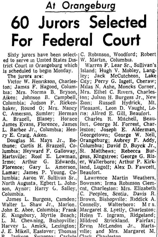 Sixty jurors have been elected to serve in United States District Court in Orangeburg which is schedule to begin Monday.
