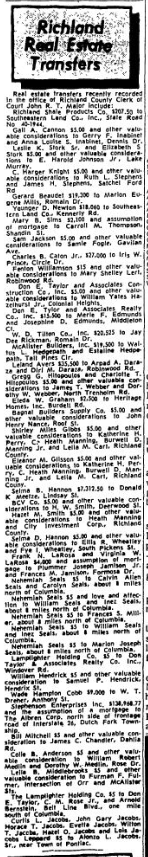 Real estate transfers recently recorded in the office of Richland County Clerk of Court John R. T. Major include: