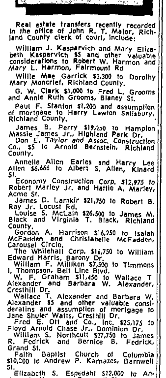 Willie Mae Garrick $3,300 to Dorothy Mary Moncrief, Richland County