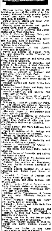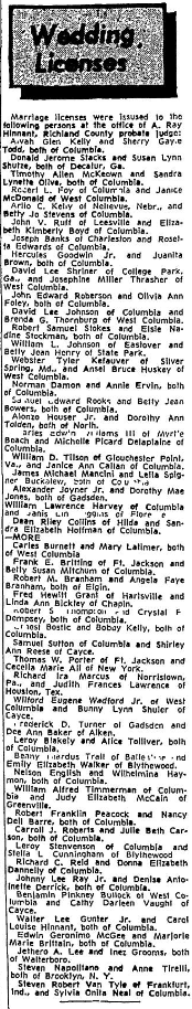 Walter Lee Gunter Jr., and Carol Louise Hinnant, both of Columbia.