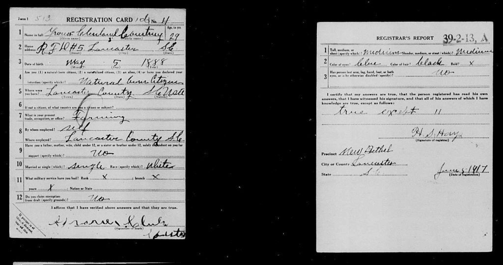Grover Courtney completed his Military Draft Registrationon 05 Jun 1917 in Lancaster, South Carolina, USA. He was described as medium heigh, medium build, blue eyes and black hair.