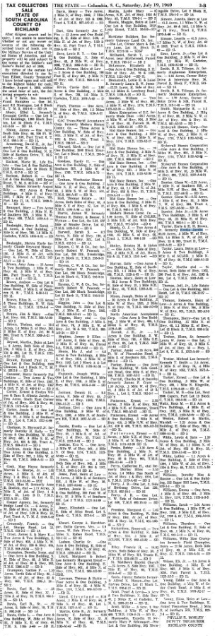 By virtue of the certain tax excutions directed to me by Tom Elliott, County Treasurer, I have levied upon and will sell to the highest bidder for cash, Monday, August 4, 1969, within the usual hour of sale, the following property to wit: