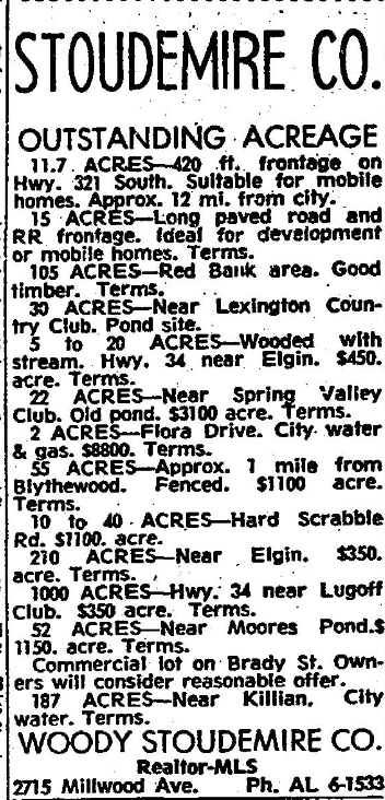117 ACRES – 420 ft. frontage on Hwy. 321 South. Suitable for mobile homes. Approx. 12 mi. from city.