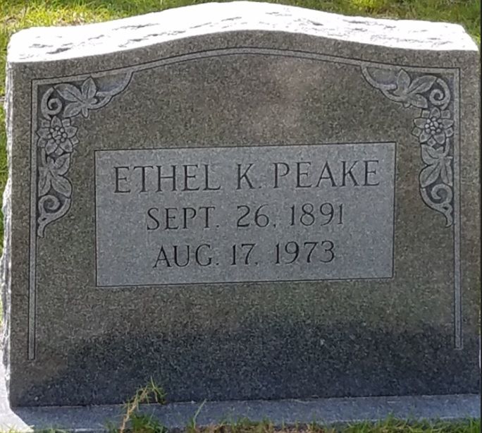 Ethel Vermell Kelly Peake died on 18 Aug 1973 in Richland, South Carolina, USA. She was buried in Elgin, Kershaw, South Carolina, USA at Harmony Baptist Church Cemetery.