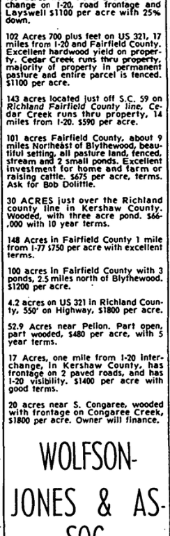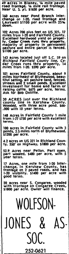 4.2 acres on US 321 in Richland County, 550 on Highway, $1800 per acre.
