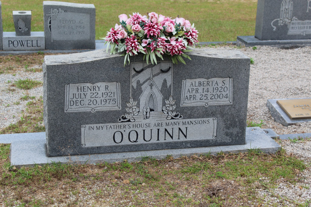 On April 25, 2004, Henry Robert O’Quinn was listed as the deceased husband in the obituary of Nannie Albert O’Quinn.