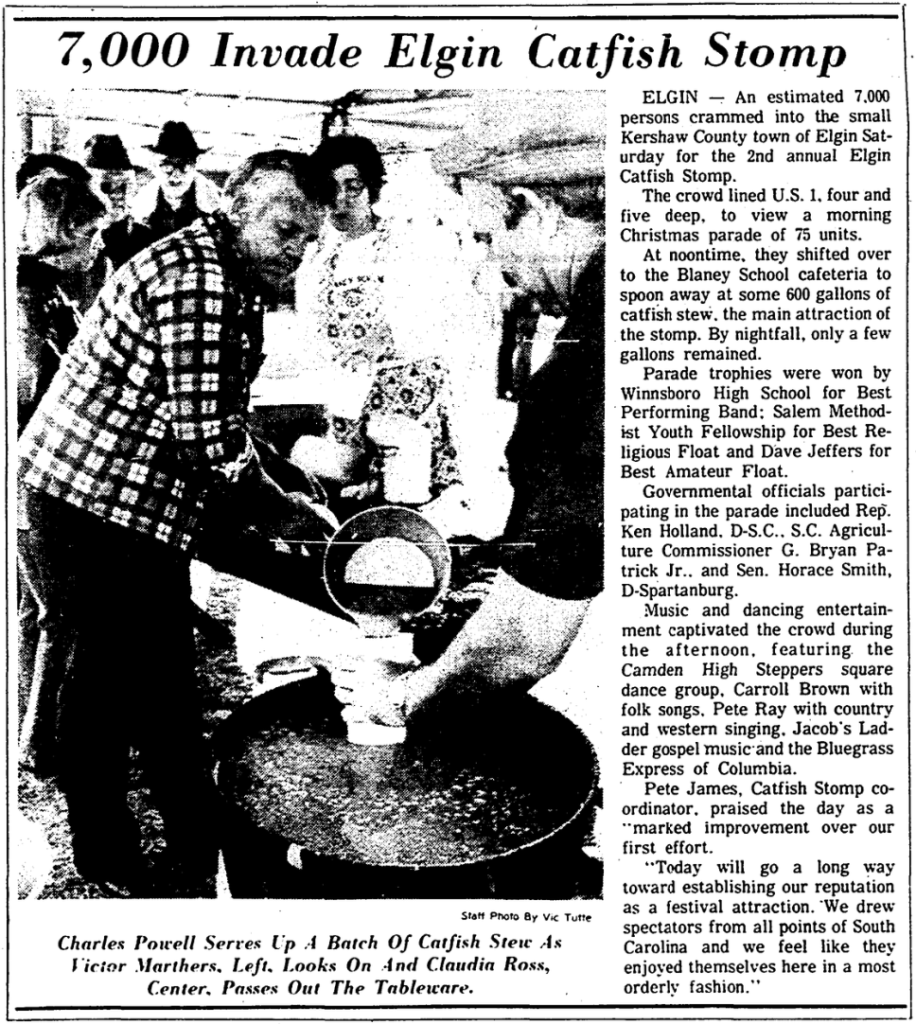 ELGIN – An estimated 7,000 persons crammed into the small Kershaw County town of Elgin Saturday for the 2nd annual Elgin Catfish Stomp.