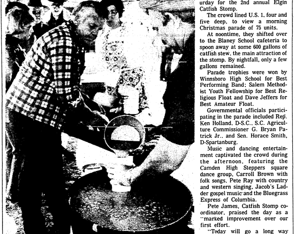 ELGIN – An estimated 7,000 persons crammed into the small Kershaw County town of Elgin Saturday for the 2nd annual Elgin Catfish Stomp.