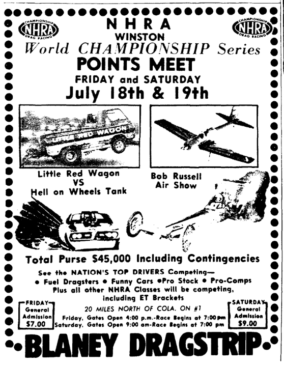 Plus all other NHRA Classes will be competing, including ET Brackets