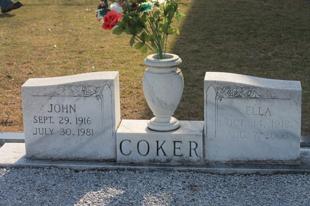 On August 7, 2005, John Coker was listed a deceased husband in the obituary of Ella Branham Coker.