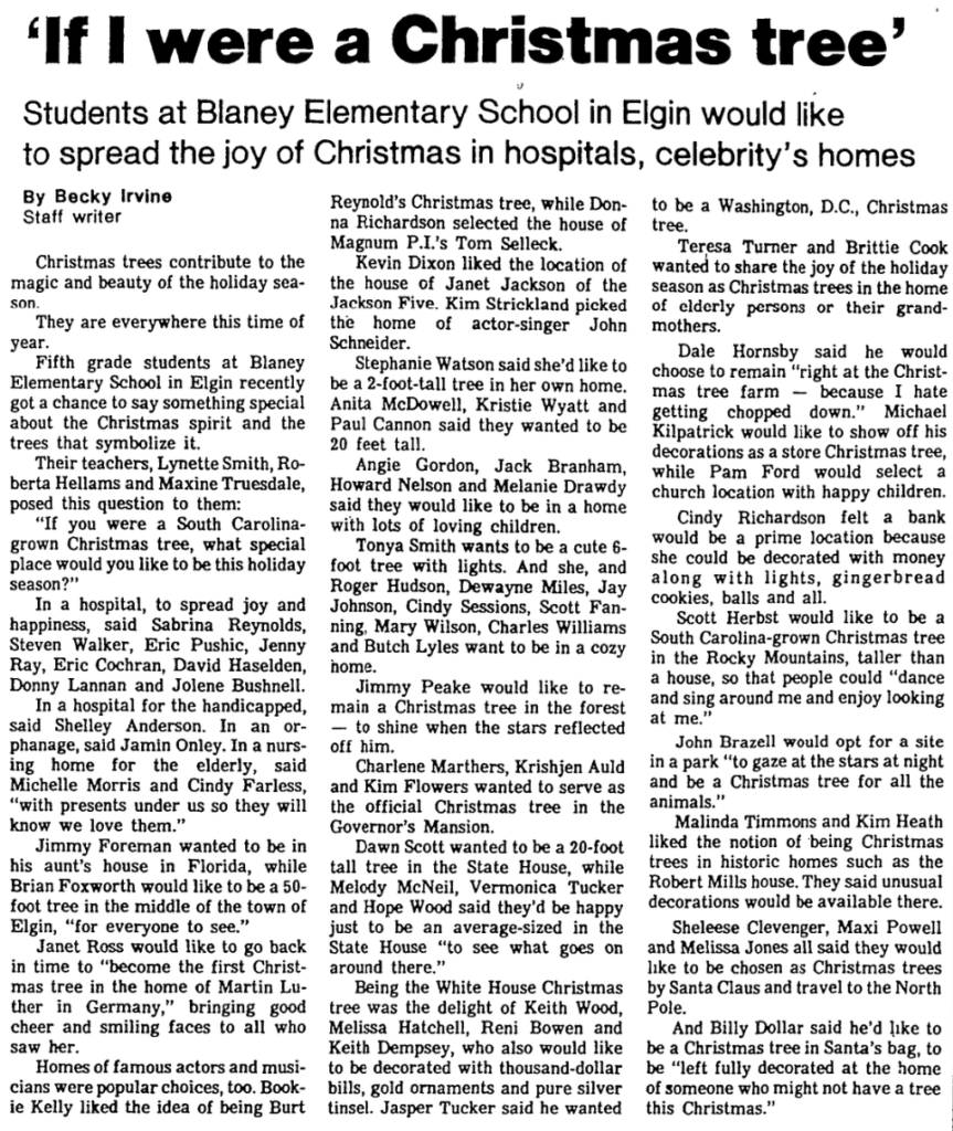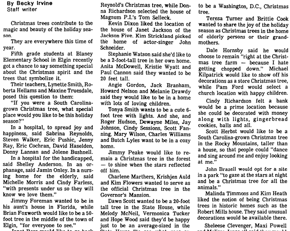 “If you were a South Carolina Christmas tree, what a special place would you like to be in this holiday season?”