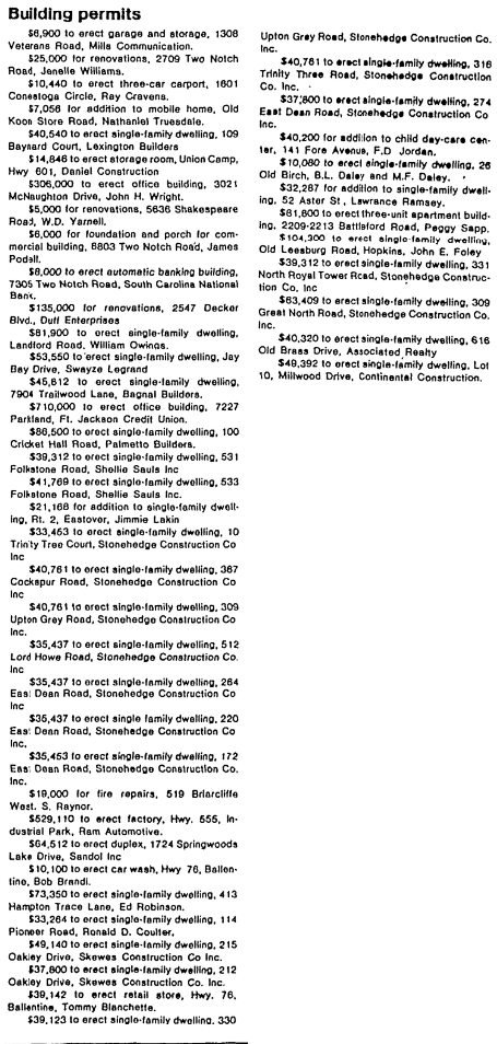 $39,142 to erect retail store, Hwy. 76, Ballentine, Tommy Blanchette.