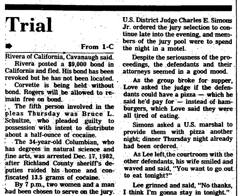 The 34-year-old Columbian, who had degrees in natural science and fine arts, was arrested Dec. 17m 1982, after Richland County sheriff’s deputies raided his hoe and confiscated 13.5 grams of cocaine.