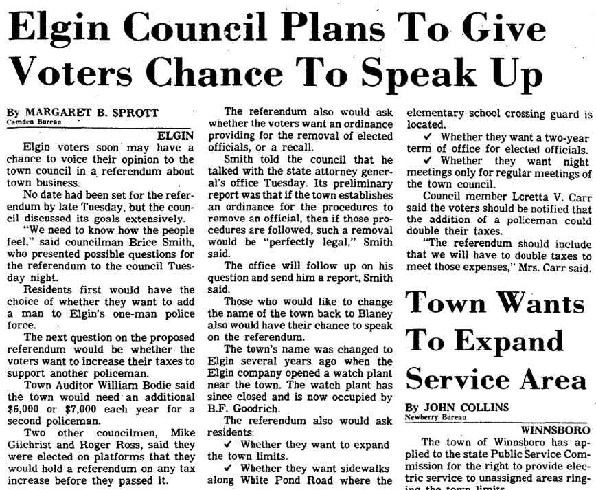 Elgin voters soon may have a chance to voice their opinion to the town council in a referendum about town business.